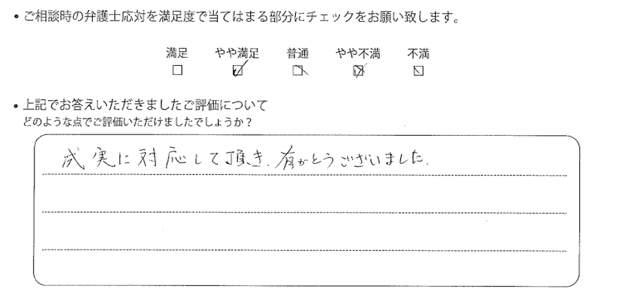昔、弁護士の方の横柄な態度に嫌な思いをした事があり大変不安でしたが初回の電話対応から面談とも安心してお話しできました。