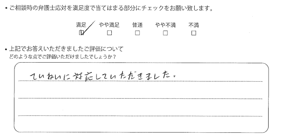 対応がていねいで聞いてもらえるという安心感がもてた。